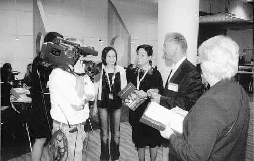 在美国口腔正畸学术年会上,周亚军接受了当地新闻媒体采访。