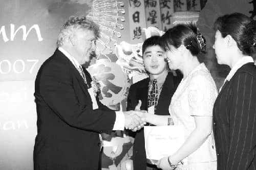 在中国台北召开的亚太地区戴蒙矫正系统论坛上,美国汤姆匹茨教授与周亚军亲切交流。