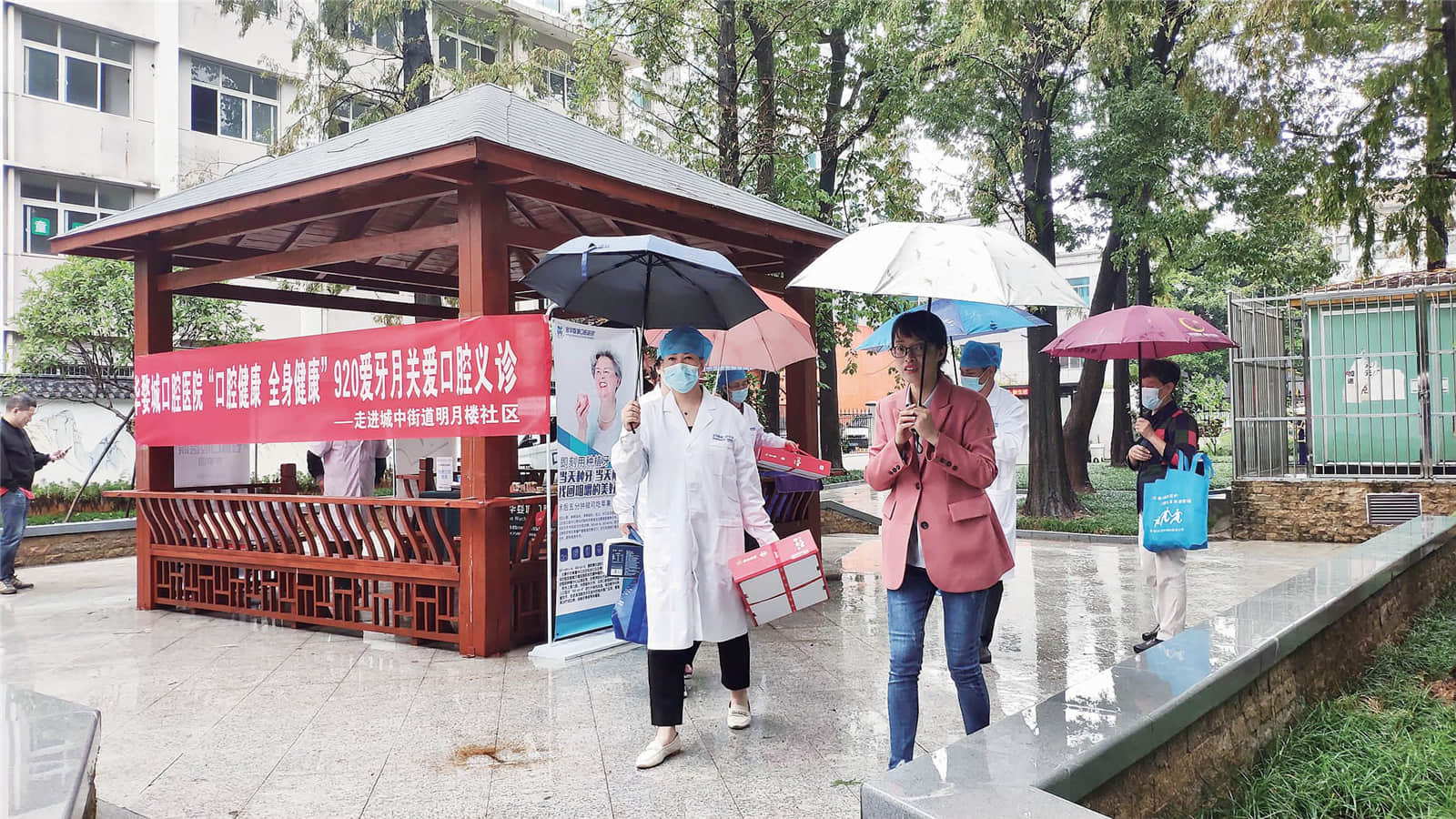 目前,婺城口腔医院的公益队伍逐渐壮大,在周亚军的带领下,医护人员每月都会参加由市社保局组织的“崇尚健康生活 退享金色年华”企退人员健康学堂讲座及义诊活动,走进全市各个偏远乡镇,为老人们带去慰问品和免费口腔体检治疗。从2002年开始响应卫健局、教育局联合组织开展的学校窝沟封闭项目、儿童公益防蛀牙活动,至今仍在持续开展,累计服务超过30万人次,今年医护人员已经走进全市40余家小学、初高中学校,为5万余名学生提供免费体检和咨询。