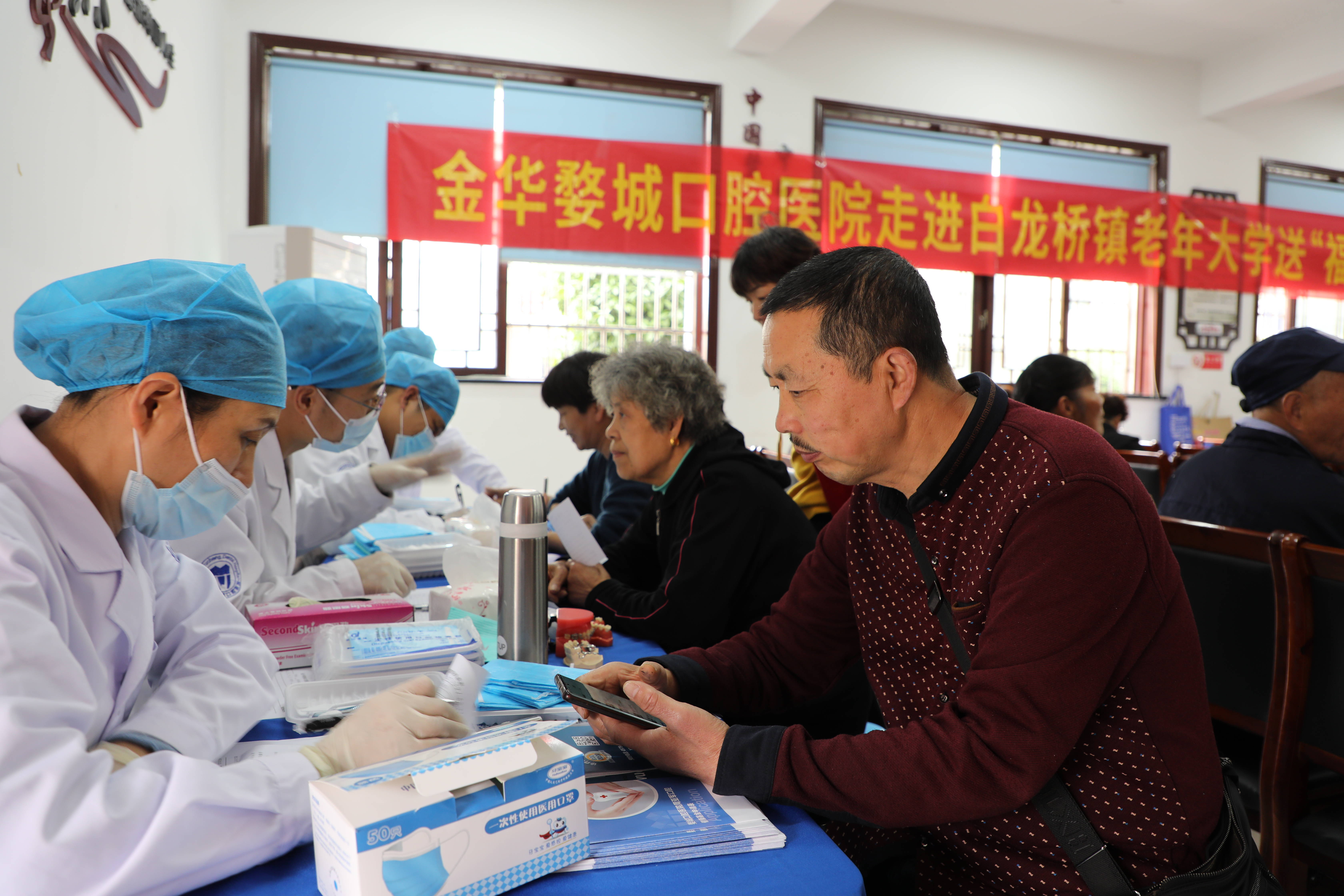 4月1日上午,由婺城口腔医院主办的“口福行动”走进白龙桥镇老年大学,关爱老人口腔健康。