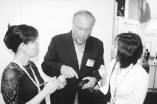 在中国台北召开的亚太地区戴蒙矫正系统论坛上,美国汤姆匹茨教授与周亚军亲切交流。
