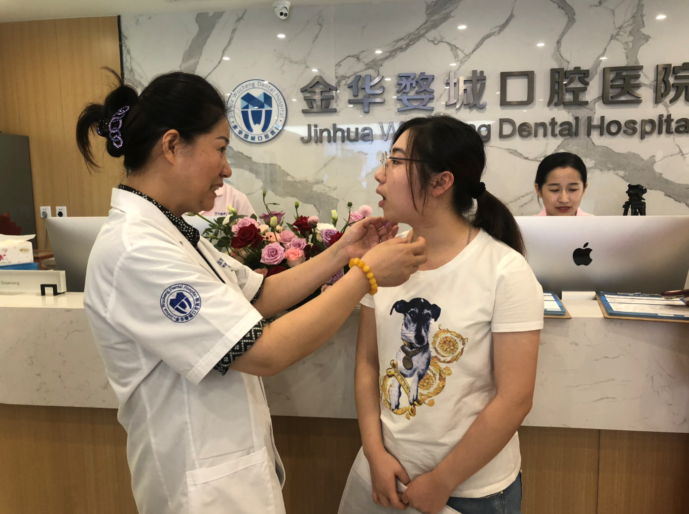 和王阿姨第一次看上海来的专家不同,在杭州读大学的金华姑娘李思屿就是为杨驰教授而来。李思屿颞颌关节错位,很早之前就在金华婺城口腔医院周亚军院长这看牙。“2017年,在周院长的推荐下,我去上海杨教授那做了手术。”李思屿说,按照要求,术后每半年复查一次。