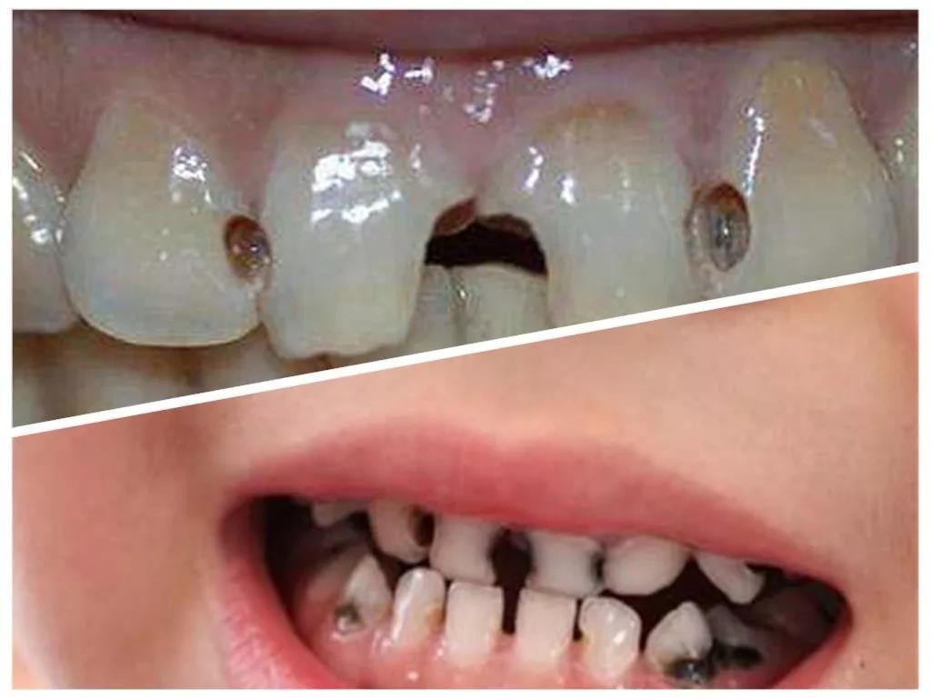 在我国,很多家长认为孩子乳牙迟早要更换,不需要对龋坏的乳牙进行治疗,这导致很多小朋友在满口烂牙中度过了七彩的童年。据不完全统计,我国18岁以下儿童龋病患病率高达66%,但是治疗率不足3%,3岁以下儿童开始刷牙只有13%,仅有9%的家长监督孩子刷牙,这是很让人心酸的数据……