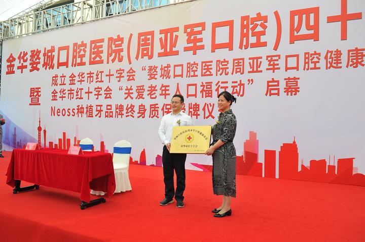 10月1日,金华市红十字会“婺城口腔医院周亚军口腔健康基金”正式成立。婺城口腔医院院长周亚军向金华市红十字会党组书记施怡伟转交了20万元基金,此基金将用于青少年口腔健康预防、治疗,以及关爱老年人口福行动中。