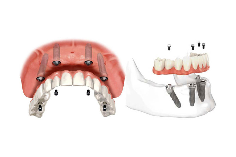 答:传统的方法通常使用6~8颗植体、植骨,耗时18个月左右,这段时间内,患者必须要佩戴活动临时假牙过渡。即刻负重的过程是,首先病人初诊,医生为病人做各项准备(包括CBCT、照片、模型等),接下来的第二次就诊中,医生完成种植和即刻修复固定假牙,即使拔牙也会安排在种植手术同期进行。这样不管患者在手术前无牙还是剩余少量不能保留的牙齿,患者当天离开的时候,就能拥有一副漂亮的、固定的、完好功能的假牙。