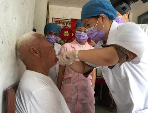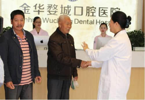 琅琊镇潭背村距离金华约45公里,山路崎岖,且路面施工作业,9月21日,周亚军院长再次颠簸着来到老人的家里,花了一天的时间亲自为老人取模等系列工作。期间,又专程派车将老人接到金华婺城口腔医院试戴假牙和调整。昨天收到加工好的假牙成品,今天第一时间,周院长安排了车辆再次前往山区将老人接到了婺城口腔医院,为老人戴上了目前最先进的纯钛材料制作的假牙,并调磨好,直到老人舒服满意为止。细心的周院长还特意为老人准备了花生米让老人试吃,老人一边嚼着花生米一边高兴地说:“香,真香。多亏了周院长,了却了我多年的念想,真是太感谢了!”并乐呵呵地拿走了周院长赠送的两包花生米。